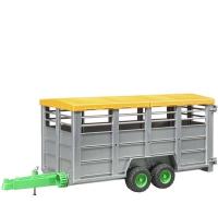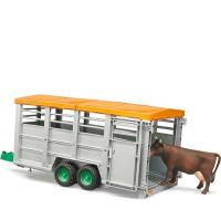 Deze transporttaak is nu mogelijk met de nieuwe veewagen van Bruder. De dieren kunnen in de veewagen geleid worden via de opvouwbare achterklep en kunnen via de zijdeur gevoerd worden. 1 koe in de standaard 1:16 maatvoering van Bruder is inclusief.