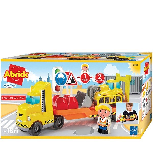 Als er iets aan de weg moet gebeuren komt de Abrick Vrachtwagen met Oplegger al snel aanrijden!