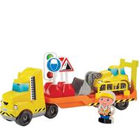 Help jij de wegwerker een handje? Rij naar de juiste plek, laad de bulldozer van de oplegger afrijden en zorg dat jij de juiste verkeersborden plaatst voordat jullie aan de weg beginnen te werken!