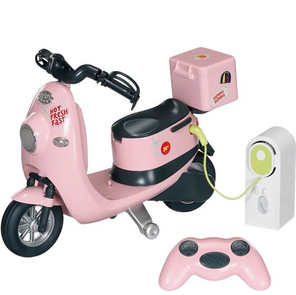 Ga samen met Baby Born op haar nieuwe RC E-scooter naar de stad.