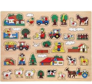 Knopjespuzzel Hout Mega Boerderij 32-Delig