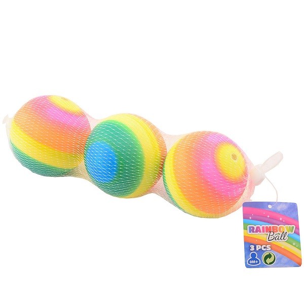 Deze set bestaat uit 3 regenboog ballen. De balletjes zijn gemaakt van zacht materiaal en hebben een doorsnede van 8 centimeter.