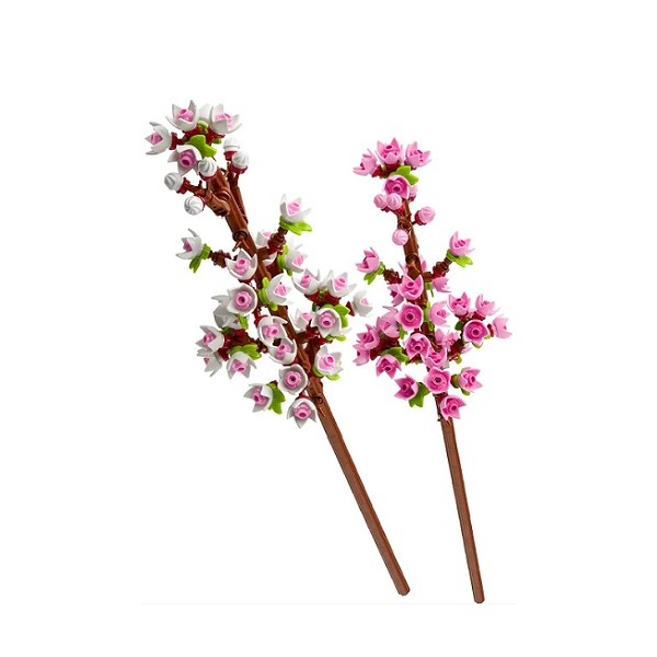 De set bestaat uit 2 bouwbare kersenbloesemtakken die kunnen worden versierd met delicate knoppen in de kleuren wit en roze.