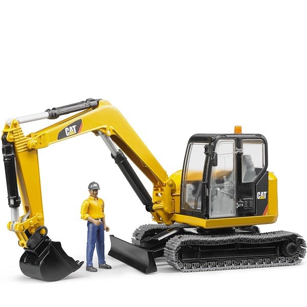 De Bruder CATerpillar minibagger kan zowel binnen als buiten gebruikt worden. De set wordt geleverd inclusief de Bruder werkman met helm.