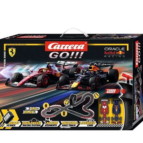 Beleef de ultieme strijd van de Formule 1 in je eigen woonkamer met de Carrera GO!!! Speed Zone set.