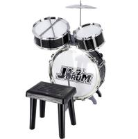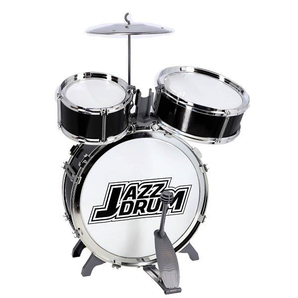 Het drumstel bestaat uit een grote drum met twee kleinere drums en een cymbaal, waardoor kinderen verschillende geluiden kunnen creëren en hun drumvaardigheden kunnen ontwikkelen.