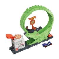 In de Hot Wheels Krokodil in de Aanval Looping speelset heeft een reusachtige krokodil een plek veroverd in de Hot Wheels Pizzatent.