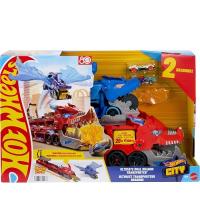 Scheur de strijd tegemoet met deze reusachtige draaktruck met een extra, afneembare draak die speelgoedauto's opeet!