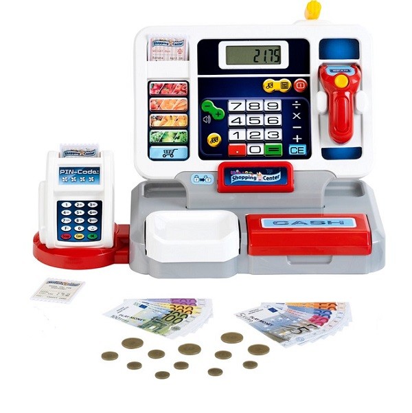 Natuurlijk zit er ook speelgeld bij: munten van hoogwaardig kunststof (vijf x 1 cent, drie x 2 cent, twee x 5 cent en twee x 10 cent) en duurzame bankbiljetten (twee x 5 euro, 10 euro, 20 euro, 50 euro, 100 euro, 200 euro en 500 euro bankbiljetten per stuk), zes bonnetjes en een creditcard.
