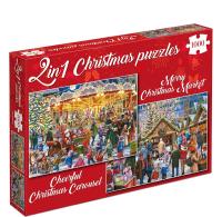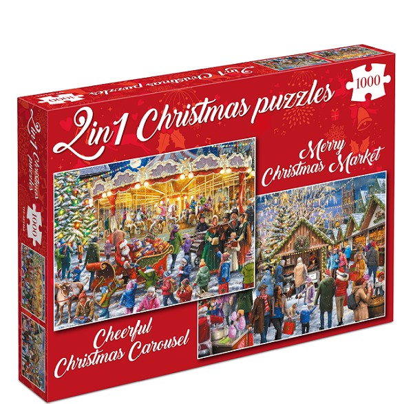 Kerstpuzzels 2 in 1 Merry Christmas Market en Cheerful Christmas Carousel 1000 stukjes