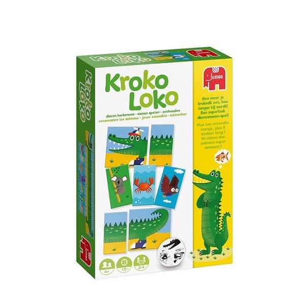 Jij kunt Kroko Loko voeren door te onthouden waar de juiste dierenkaartjes liggen. Wie maakt de langste krokodil?