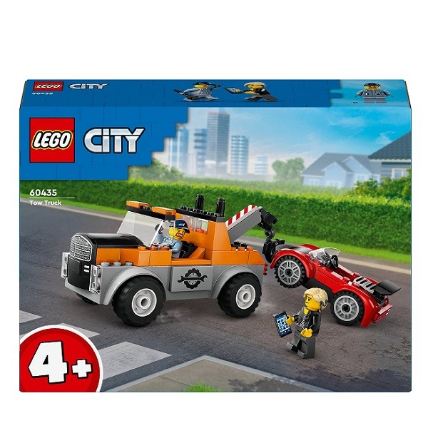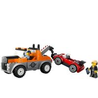 Deze auto pech bouwset bestaat uit een sleepwagen met robuuste banden, een bestuurderscabine en een werkende takel.