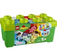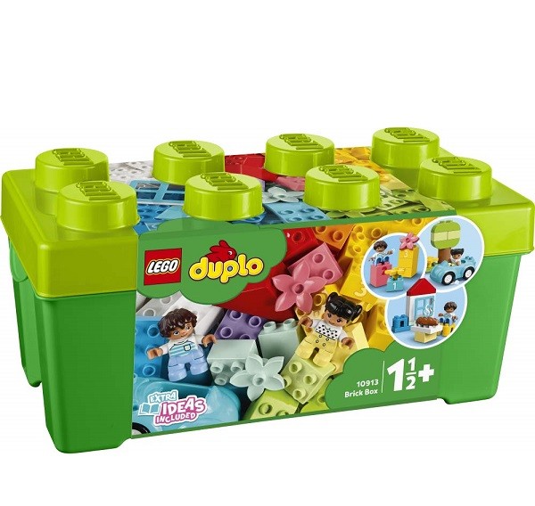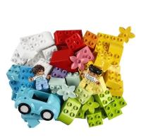 In de stevige kunststof opbergdoos vind je een auto, een dak, een raam, bloemen, een brood, 2 minifiguren, stenen met cijfers en stenen in vrolijke kleuren.