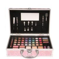 De koffer bevat verscheidene kleuren oogschaduw, rouge en lipgloss.