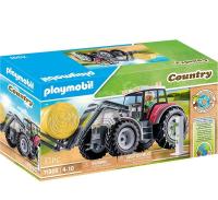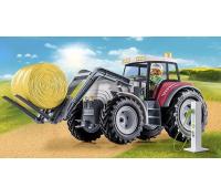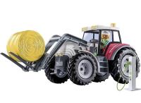 Met de moderne tractor kunnen de zware hooibalen moeiteloos worden opgetild en weggevoerd.