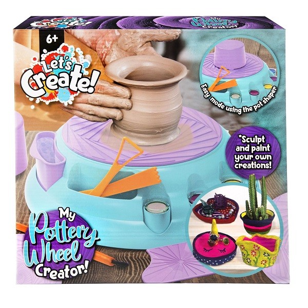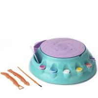 Eenvoudig maar compleet pottenbakkerset met draaiwiel. Met de verschillende hulpmiddelen kun je de mooiste potten maken.