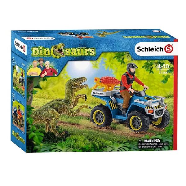 Gelukkig is Flynn dankzij zijn quad snel ter plaatse om hem te redden. Met de quad red hij Kylo uit de klauwen van de Velociraptor en is hij deze te snel af! De set bestaat uit Flynn, Kylo, de quad en de Velociraptor.