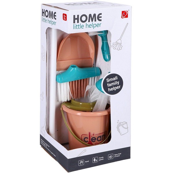De set bevat alle benodigdheden die nodig zijn om het huis schoon te maken, inclusief een mop en bezem, een stoffer en blik, en zelfs een emmer met wringdeksel. Elk stuk gereedschap is gemaakt van stevig kunststof, waardoor ze veilig en duurzaam zijn voor langdurig speelplezier.