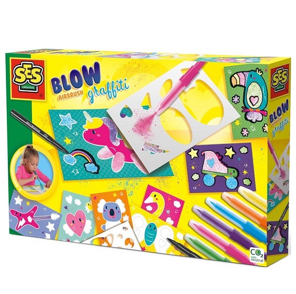 Ontdek de wereld van graffiti op een veilige en creatieve manier met de Blow Airbrush Graffiti set van SES Creative!