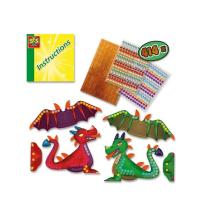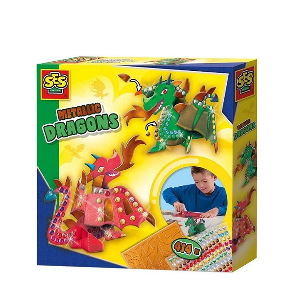 Beleef knutselplezier met de Metallic draken! Zet de papieren constructie onderdelen van de twee draken in elkaar en zie twee gekleurde draken ontstaan.