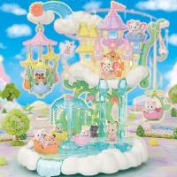 De set bevat veel leuke attracties, waaronder een sprookjeskasteel, Flower Sky Ride en Blossom Fountain! Wordt geleverd met een sprookjesstandaard om de Bloemenfee te laten "vliegen"! Er is een cafégedeelte met een tafel en een stoel in het Feeënkasteel, en elk kinderfiguur kan in de Leaf Boat zitten. De Baby Bloemenfee en het Chocoladekonijn dragen een schattige oorbel.