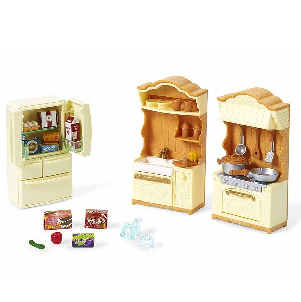 Dit keukenspeelset bestaat o.a. uit een koelkast met diepvriezer, fornuis, oven en gootsteen!