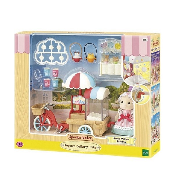 Het Popcorn Delivery Trike set bevat moeder schaap Barbara, plus een popcorn driewieler en alle accessoires die nodig zijn om een popcornkraam te runnen.