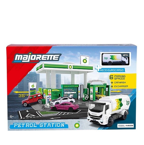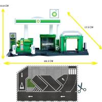 Het tankstation is voorzien van herkenbare details zoals pompen, reclameborden en een wasstraatgedeelte. De set bevat één voertuig waarmee je direct kunt starten.